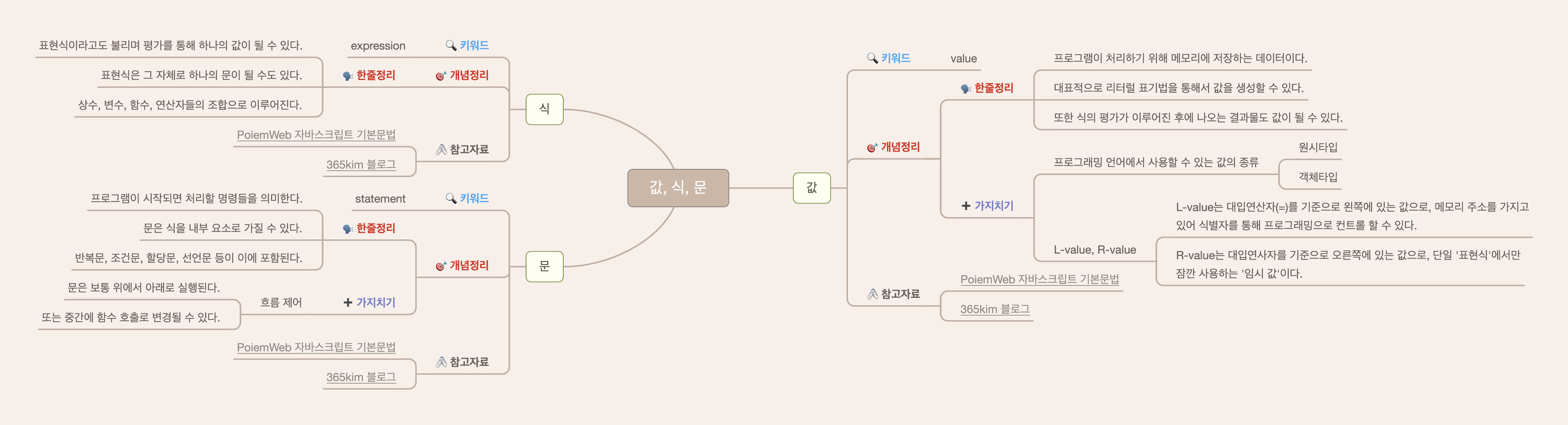 모의면접 스터디 주제인 값, 식, 문에 대해서 답변한 내용을 포함한 짧막한 정리에 대한 글입니다.